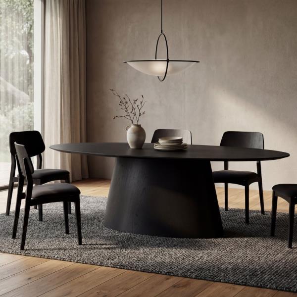 The Fortaleza Dining Table is defined by bold geometry and architectural presence. Its generously scaled oval top is supported by a distinctive sculptural base, creating a strong, grounded silhouette. Clean lines and refined proportions bring modern Brazilian influence to dining spaces built for gathering.
